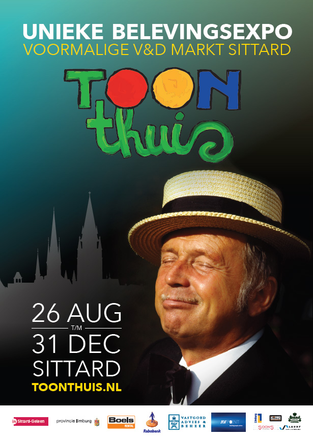 Zomer 2016 opent de belevingsexpo Toon Thuis. Toon Hermans komt thuis in Sittard, de plek die hij zijn hele leven liefhad. In het voormalige V&D pand aan de historische Markt wandel je een bont paradijs binnen, vol theater, muziek en kolder, waar je lekker kunt dazen en lachen, “Want als je lachen kan, moet je het doen”. Je bewandelt Toon’s levensweg van zijn high-society kindertijd tot en met zijn arme en droevige jeugd, waarin Toon het lachen als heelmiddel ontdekte. Je wordt omarmd door alle Sittardse feesten en tradities die Toon beïnvloedden: de St.Rosa kermis, de processie, de zomeravondconcerten van harmonieën en fanfares, de clowns in het circus en de doldwaze carnavalsdagen.